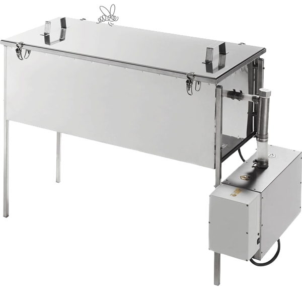 Ånvaxsmältning:Det finns många typer av ångvaxsmältare allt från den enklare för 220 v som i princip utgår från samma utrustning som går att känna igen som tapetborttagare. Dessa består av ett ångaggregat som på samma sätt som en vattenkokare kokar vatten i en behållare som sen leds genom en slang ner i den rostfria behållaren. På motsvarande sätt finns det liknande utrustning för 400 v som naturligtvis har en högre effekt och smälter fler ramar på samma gång. Sen finns det även vedeldade varrianter för den som har tillgång till det. Oavsett vilken typ man har så bygger det förutom ånggeneratorn på att man har en rostfri behållare i vilken ramarna placeras. När sen vaxet smälter passerar det smälta vaxet en sil där kokongerna silas bort och det smälta vaxet sen rinner ut ur behållaren. Tips för smältning: